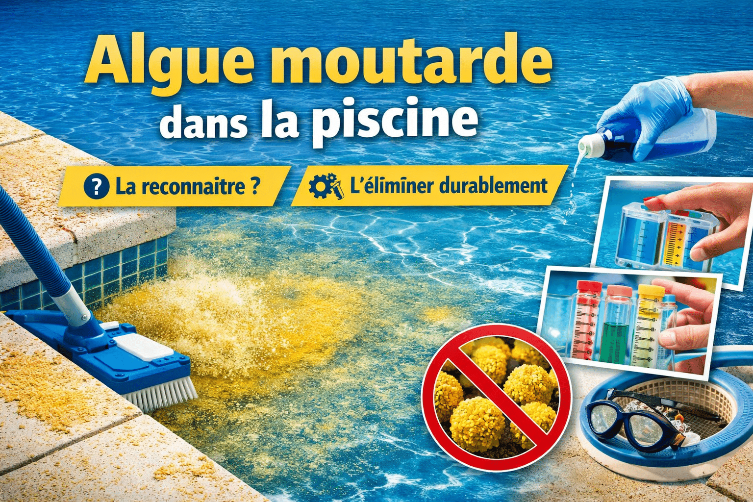 Algue moutarde dans la piscine : la reconnaître, l’éliminer vraiment et éviter qu’elle revienne